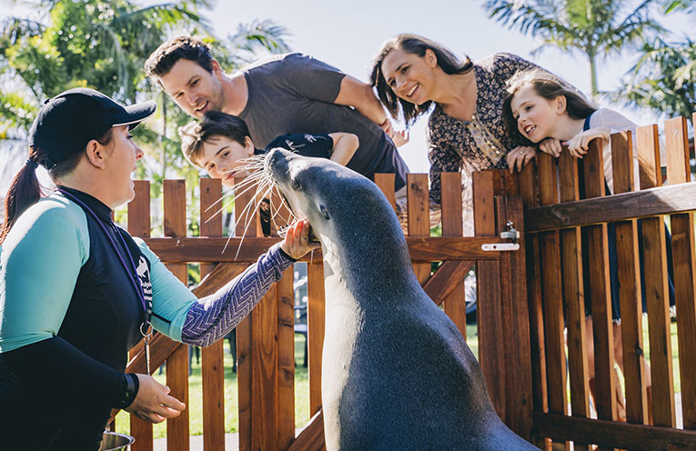 In addition to the daily program, visitors can swim with a dolphin or meet an Australian sea lion in an optional private experience.