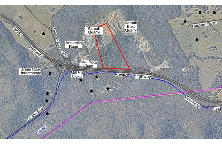 The site is located between two existing quarries and the Pacific Highway, which the proponent states will “limit land use conflicts and build upon the existing successful extractive industry development that has been supplying essential construction materials for over twenty years”.