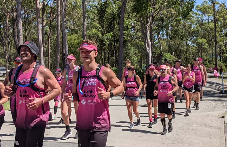 Motorists heading down the Pacific Highway may have seen the swarm of pink-clad runners, with their support cars loaded with family and friends.