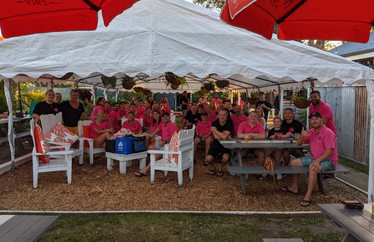 The runners and supporters chose the Tea Gardens Hotel as their base for the duration of the event, with their bright pink shirts visible most nights in town last week.