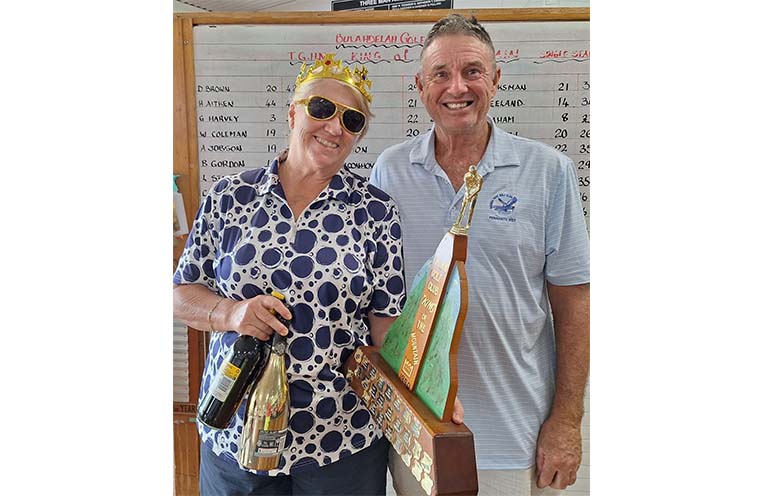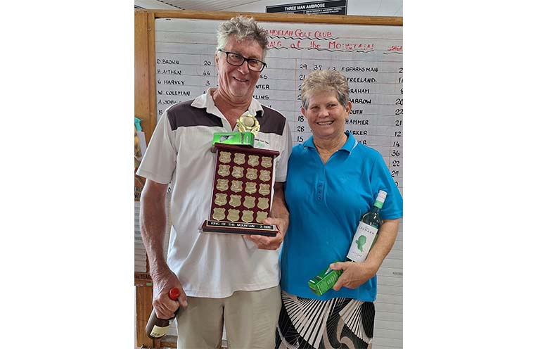 THE very prestigious King of the Mountain event was hotly contested on Monday January 8th. The Club welcomed 23 players from HNGC and they were joined by 35 BGC members for a combined single Stableford and 2BBB competition. The day began early with a light breakfast and the players hit the course before 9am. Some great scores were posted and the winner of the sought after King of the Mountain trophy was Fern Berry with 42pts. The winners of the 2BBB were Dave Brown and Heather Aitken with a huge 50pts. NTPs were Don Schoonhoven and Alan Benson while the long drivers were Greg Barton, Matthew Moss, Andrew Berry and Lou Smith. Raffle and consolation prizes were quite a surprise! Lunch was provided by Trudy and helpers, and Barbie topped off the day with cake. Thanks to HNGC for sponsoring the event and to all those who contributed – it was a very friendly day.