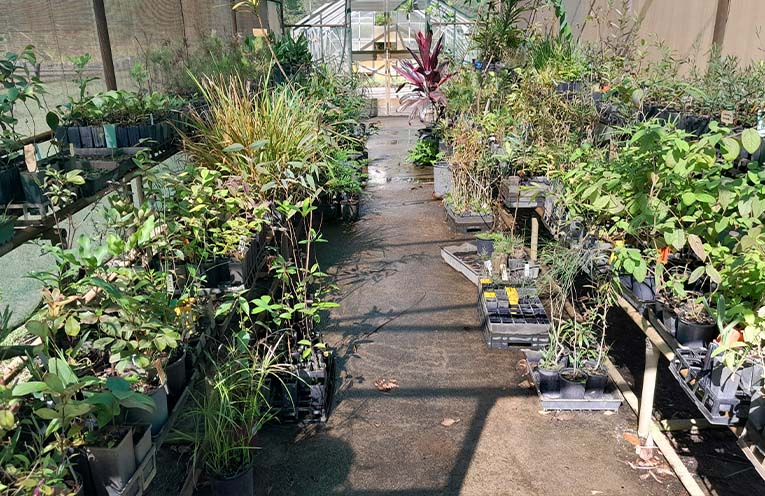 A small group of volunteers descend to the nursery twice weekly, at 9am on Tuesday and Friday mornings, via a drive through the Grassy Head Caravan Park.