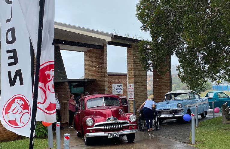 FOUR vintage cars from the National Holden Motor Museum (NHMM) Coffs Harbour took a drive down memory lane last week to visit the residents of Legacy on Victoria Residential Aged Care Facility (RACF).