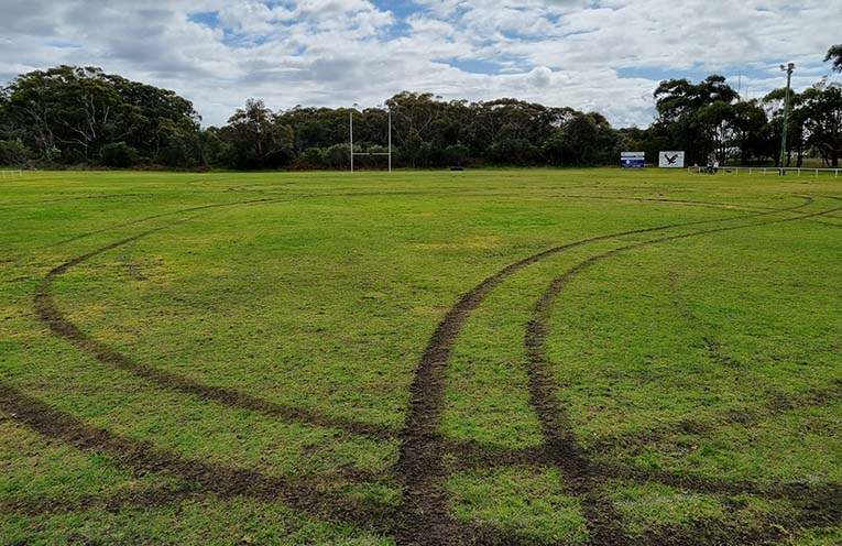 Tea Gardens Hawks RLFC executives were floored and appalled to see their team’s main field torn up, fielding scraps of witness information to piece together the incident.