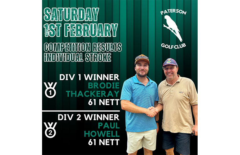 SATURDAY 1st February, Individual Stroke & Monthly Medal