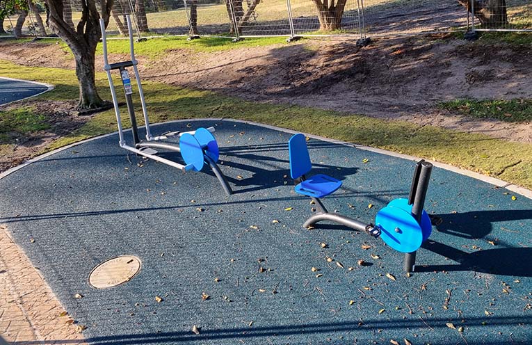 Designed and manufactured in Australia, the UrbanFit equipment sits in three distinct stations, just down the hill from the new Naidoc Mullet Run mural.