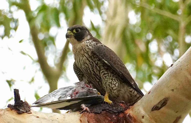 Though found across Australia, the Peregrine Falcon is not particularly common and is rarely seen, which is why a visitor to the Botanic Garden was surprised to see this magnificent bird through her camera lens.