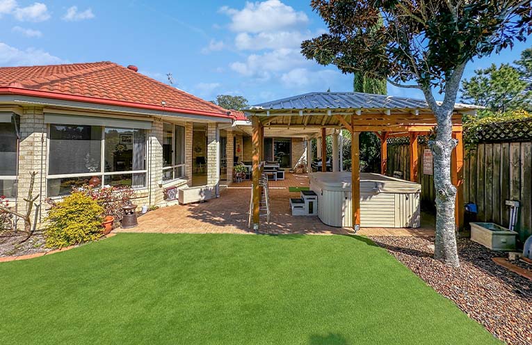 Expansive outdoor entertaining area: Perfect for year-round gatherings featuring a luxurious spa to unwind after a long day.