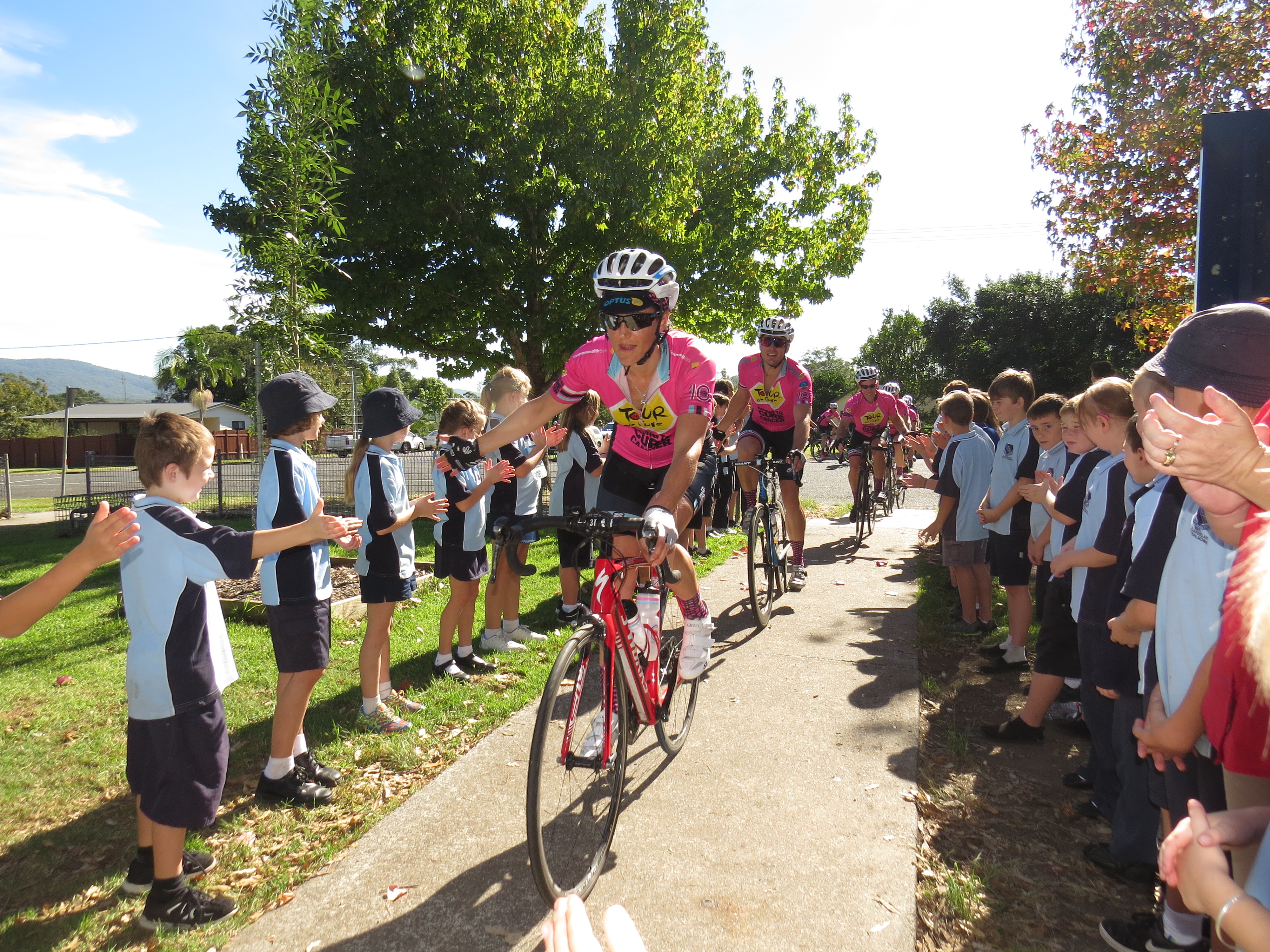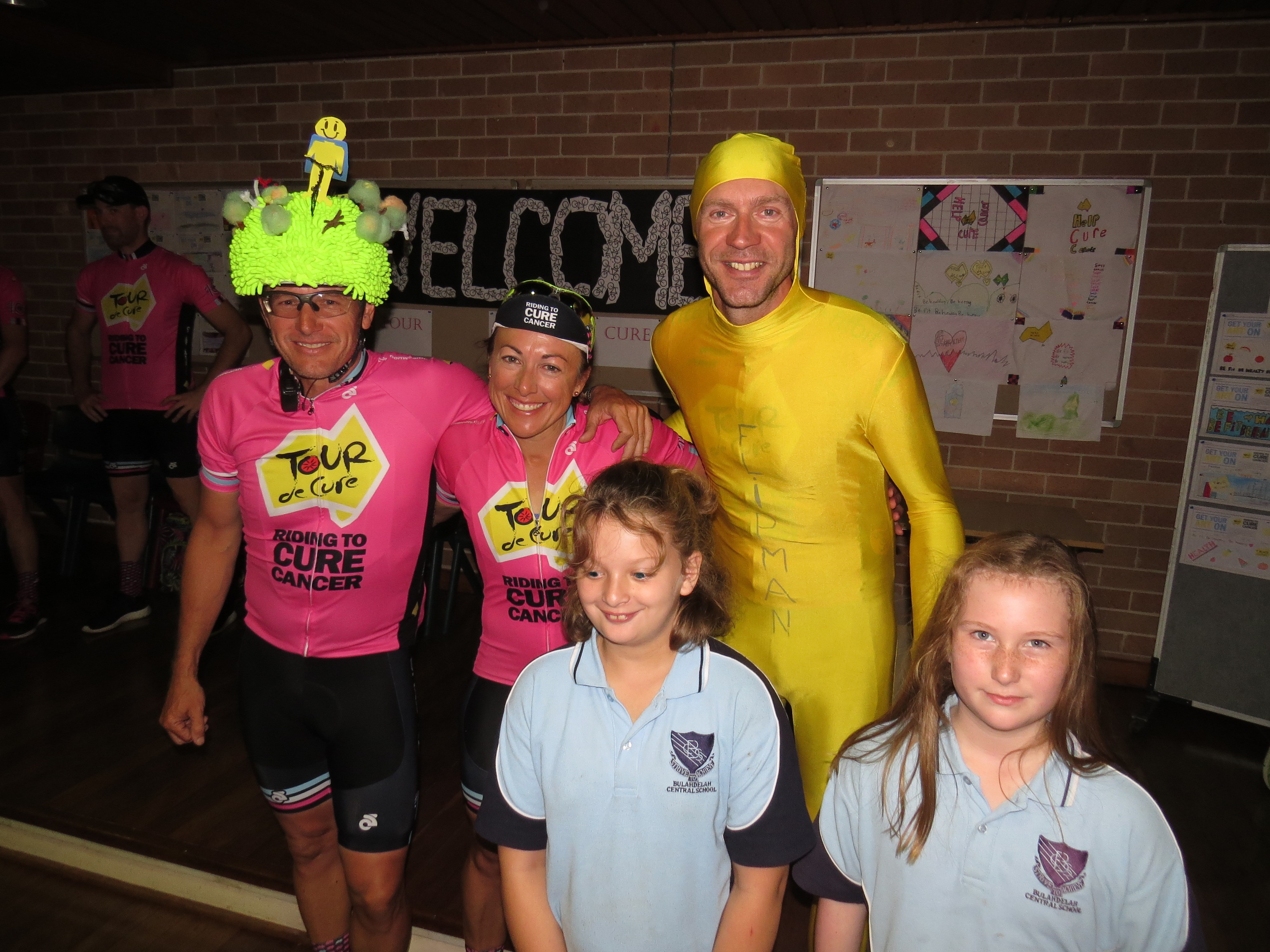 The cyclists received a noisy welcome at Bulahdelah Central and Tea Gardens Primary Schools where the riders delivered a ‘BE FIT, BE HEALTHY, BE HAPPY’ presentation aimed at encouraging cancer prevention behaviours.