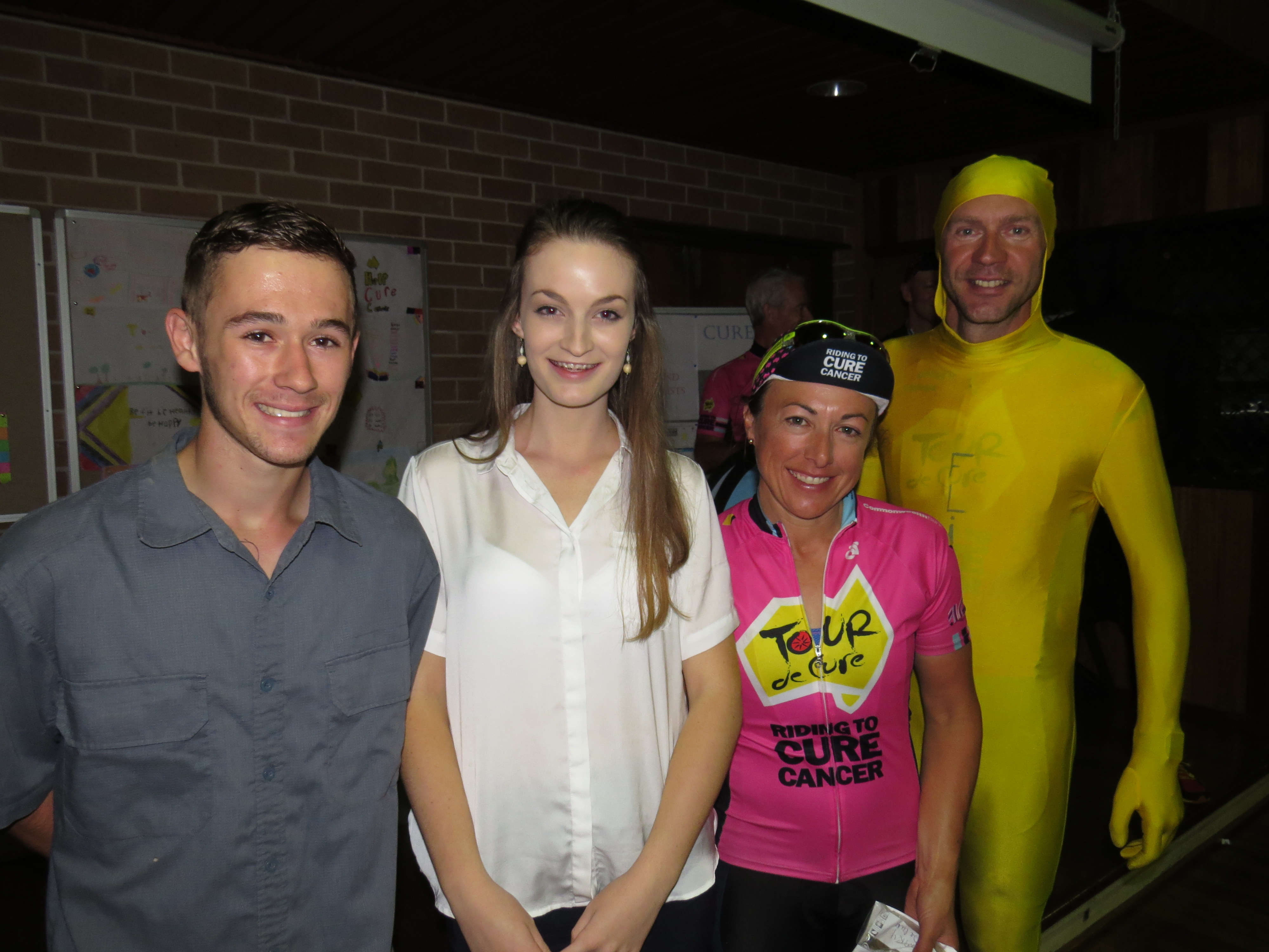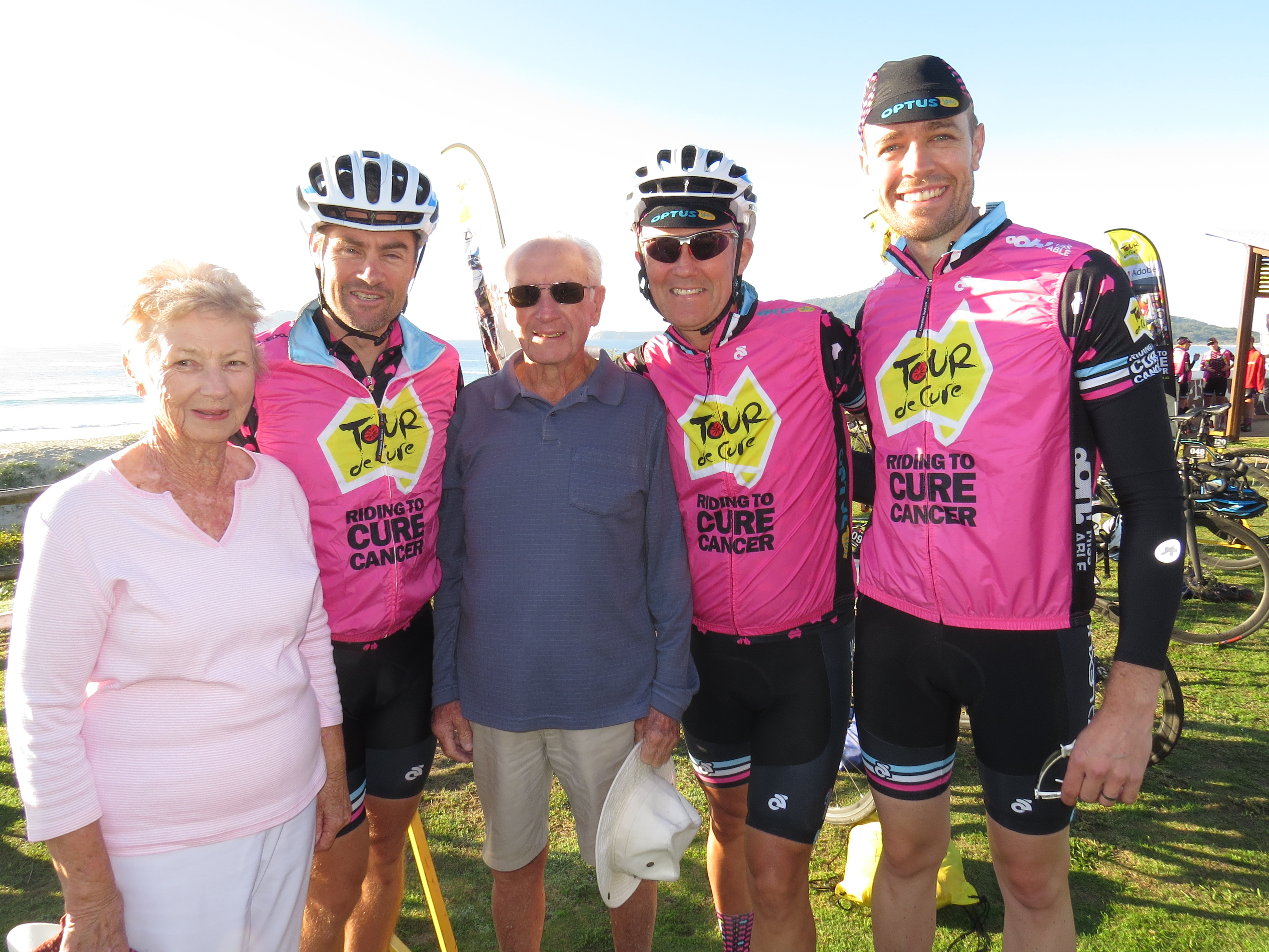 The cyclists attended a community dinner at Hawks Nest Golf Club on Friday night where the Tour de Cure team presented a cheque for $10,000 to the Cancer Council.