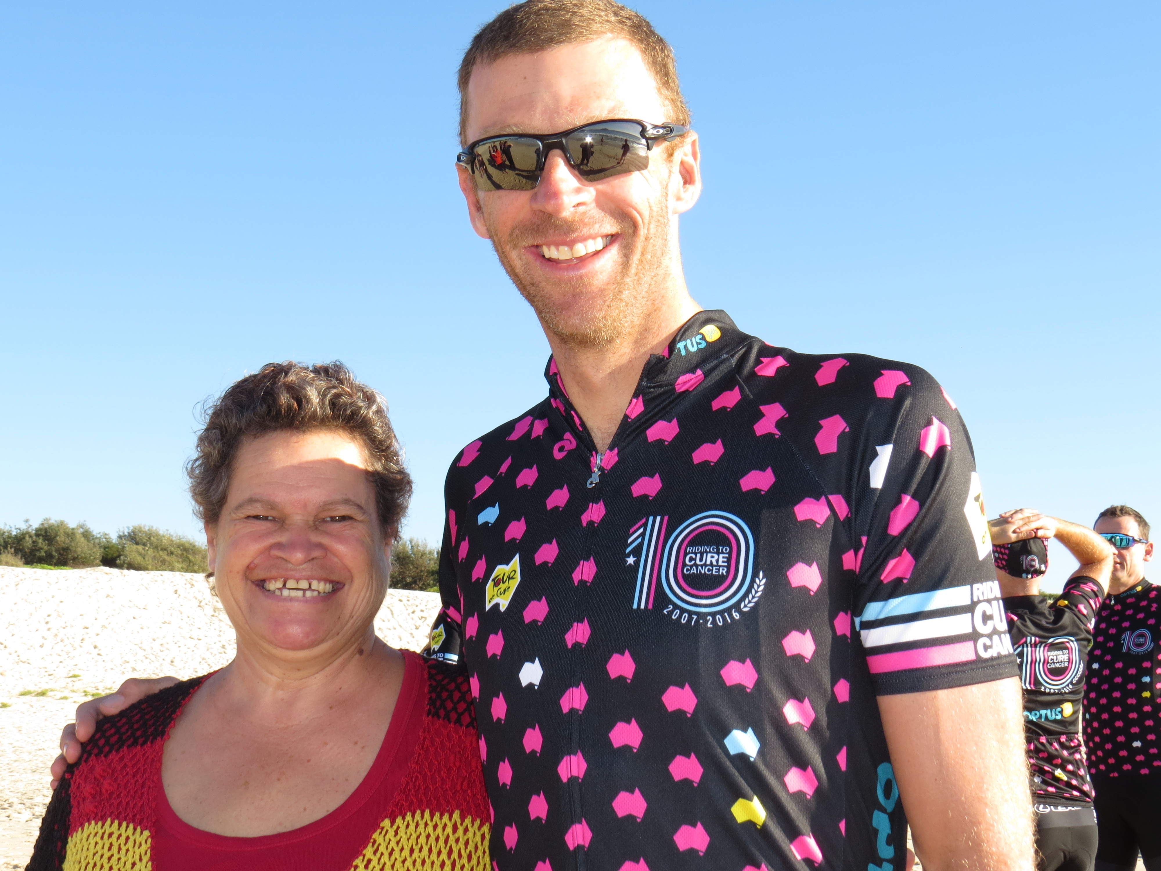 “The beach is awesome, it’s a sensational vista which we have been blessed to stop off at on our ride to cure cancer,” Drew told News Of The Area.