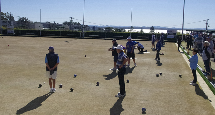 The social bowls day saw a different vibe on the greens with music playing; many players on the greens were barefoot.