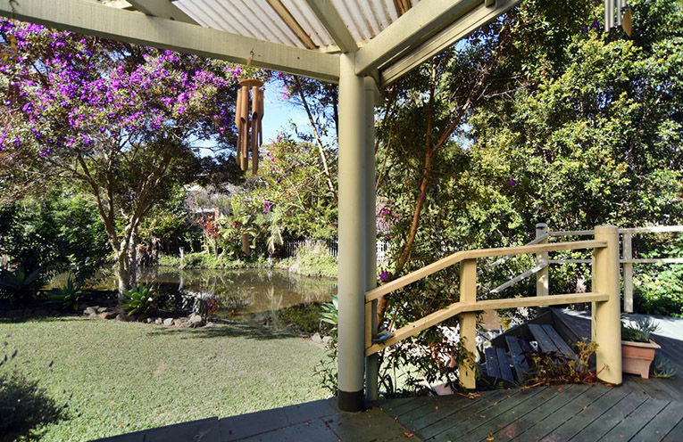 The living area also opens out to an undercover entertaining deck at rear with water views over the pond which teems with wildlife.
