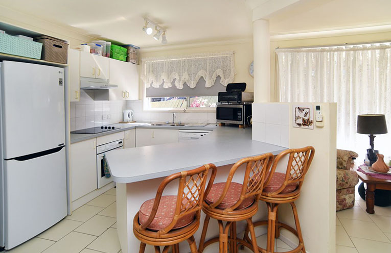 The home itself has a great sized air-conditioned open plan living area, with kitchen and dining at one end and lounge area at the other.