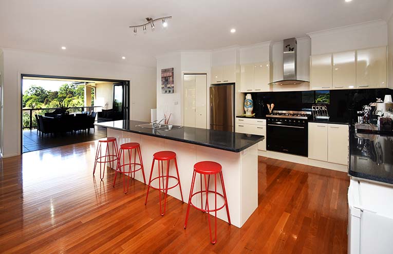 Off the kitchen is a family room with hinterland views.
