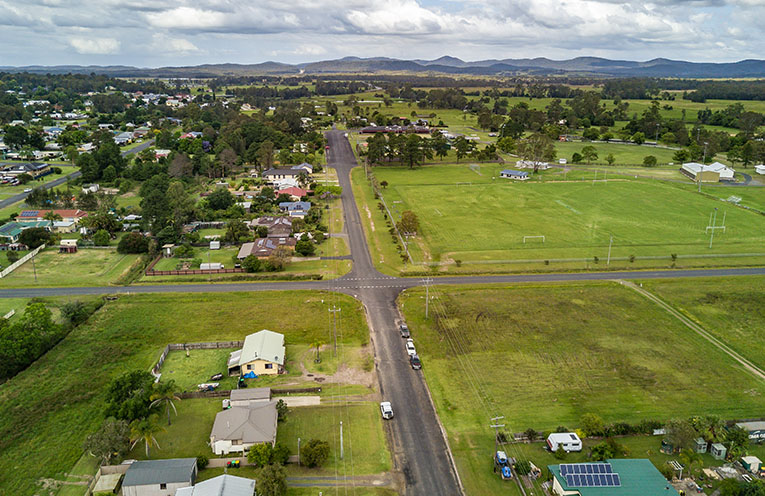 Sporting views of Bulahdelah showgrounds and sport fields, as well as panoramic views of Alum Mountain.