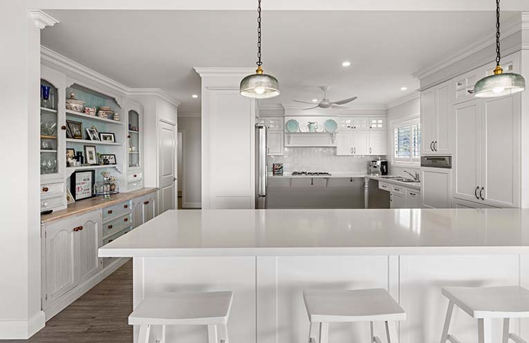 The kitchen is a chef’s delight with top-of-the-line appliances, high benchtops for ease of comfort of use, and ample space for culinary creations.