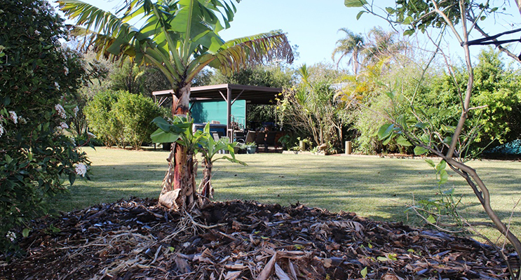 The fruit bats are partial to the banana palms, the birds sing at will in the Lillipilli trees while feasting on their fruit, the magpies think they rule, the rosellas and parrots gather enmasse at the birdbaths while the kookaburras keep a keen eye on the fish pond!
