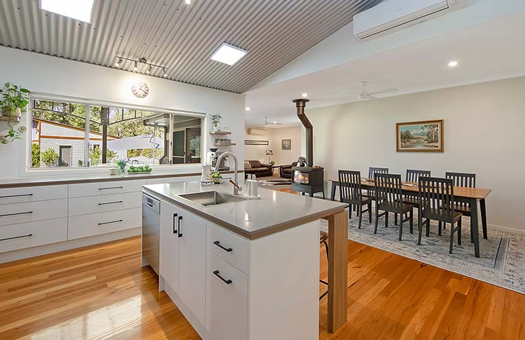 Relax with the cosy wood burning fireplace, and cook to your heart’s content with a gourmet kitchen, gas cooker and full butler’s pantry.