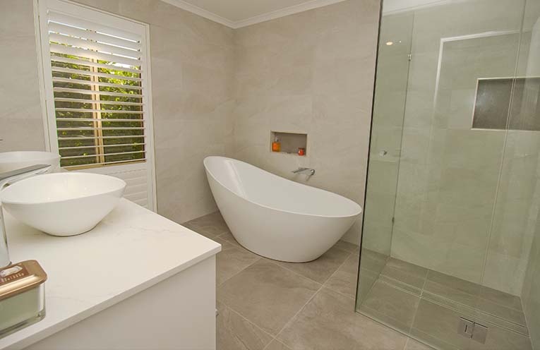 The master suite is spacious offering privacy and a large walk-in His and Hers robe and ensuite. The ensuite has just been renovated and includes rain – showerhead, Kolkata vanity top and vessel sink.