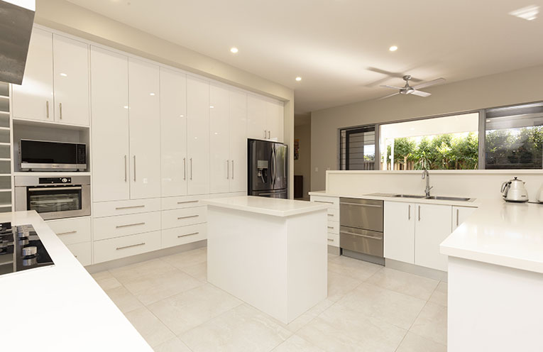 The kitchen is amazing and very modern with waterfall edging benchtops, purpose built butchers block, breakfast bar, built in wine rack, quality appliances and an abundance of food and appliance storage.