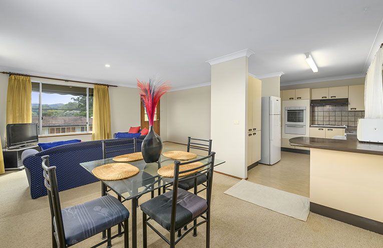 Light and airy interiors include a comfortable open-plan living room, and functional kitchen with generous cupboard space.