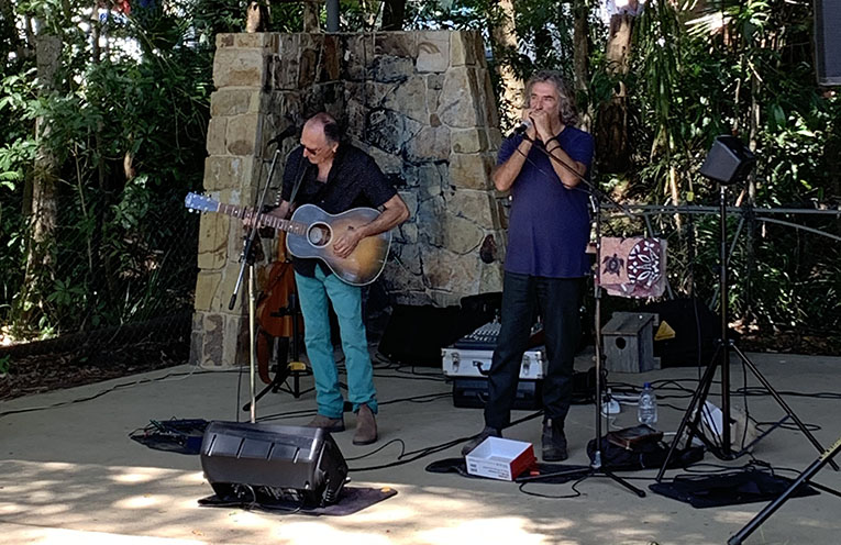 Saije performing at the Bellingen Community Markets.