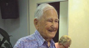On Monday 7 March members of the Hawks Nest Bridge Club were delighted to share champagne and cake with Allan Stewart, celebrating his 101st birthday.