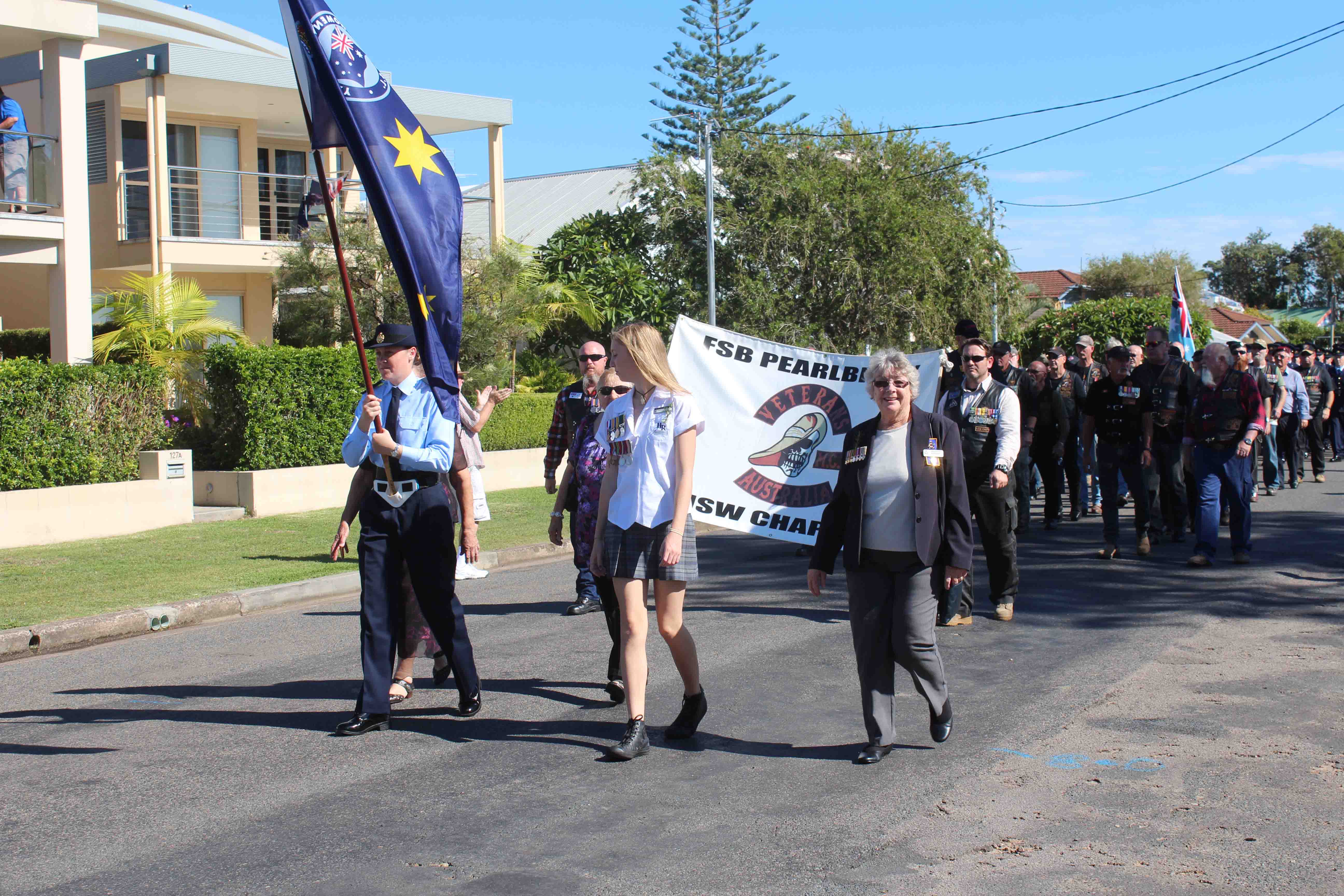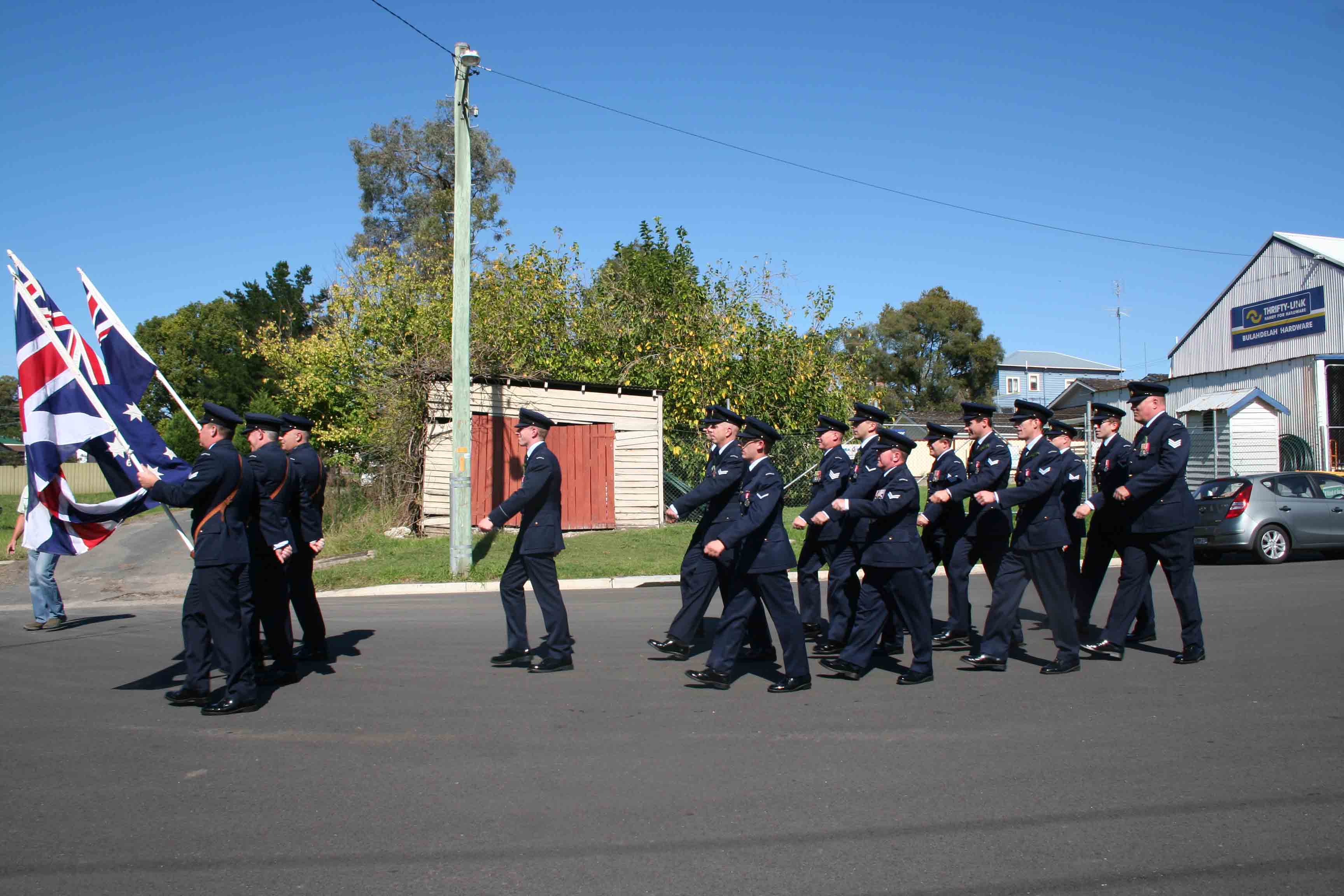 The sunny day allowed for the residents to mingle around the Cenotaph, before service personnel had a lunch at the Bowling Club.