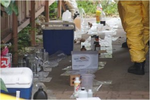 – Pre-cursor chemicals, some of which were stored in feeding bottles for infants; and,