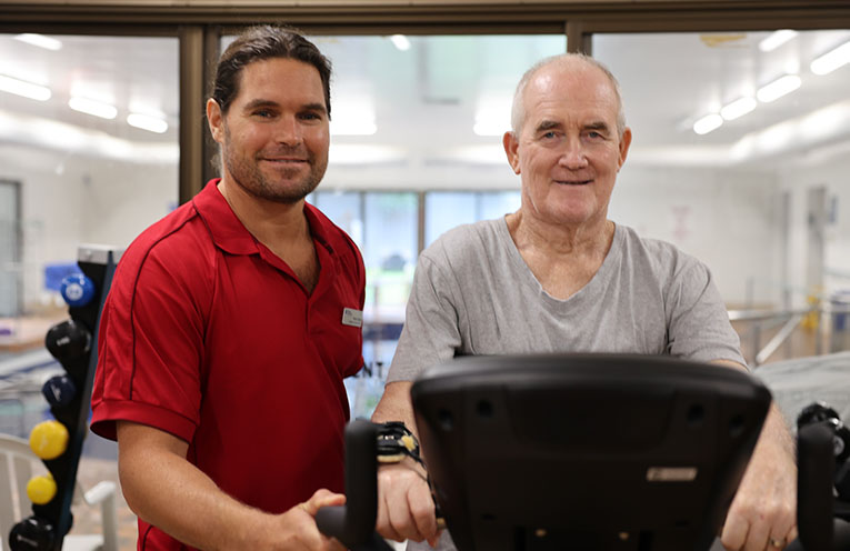 Exercise Physiologist Brett Caller, who is also a surfer, told News Of The Area, “He never misses a day, there’s no poor me, he gets here and wants to get on with it, he inspires me.