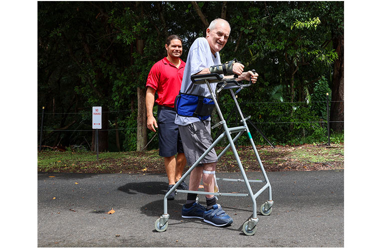 “His injury is an incomplete quadriplegic leaving him with very little function initially from the neck down, initially he couldn’t walk five metres and now he’s walking around 400 metres in 45 minutes with a forearm support frame.