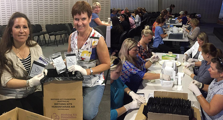 The women who attended, hand packed 400 kits containing sheets of plastic soap, gauze, scalpel blade, plastic gloves and string.
