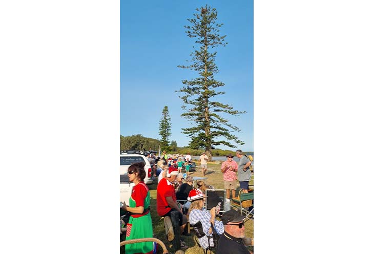 Despite a strong, persistent, south-easterly wind, residents and their families from all over Pindimar and Bundabah congregated on the northern shore of Port Stephens Bay to sing.