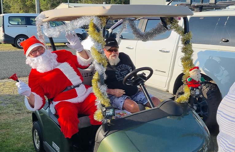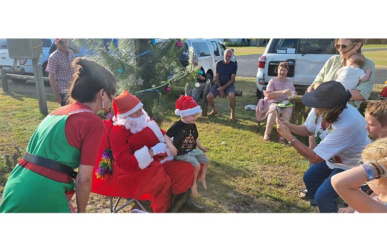 CAROLLERS celebrated Christmas early on South Pindimar beach on Saturday 21 December, with a special visitor dropping in.