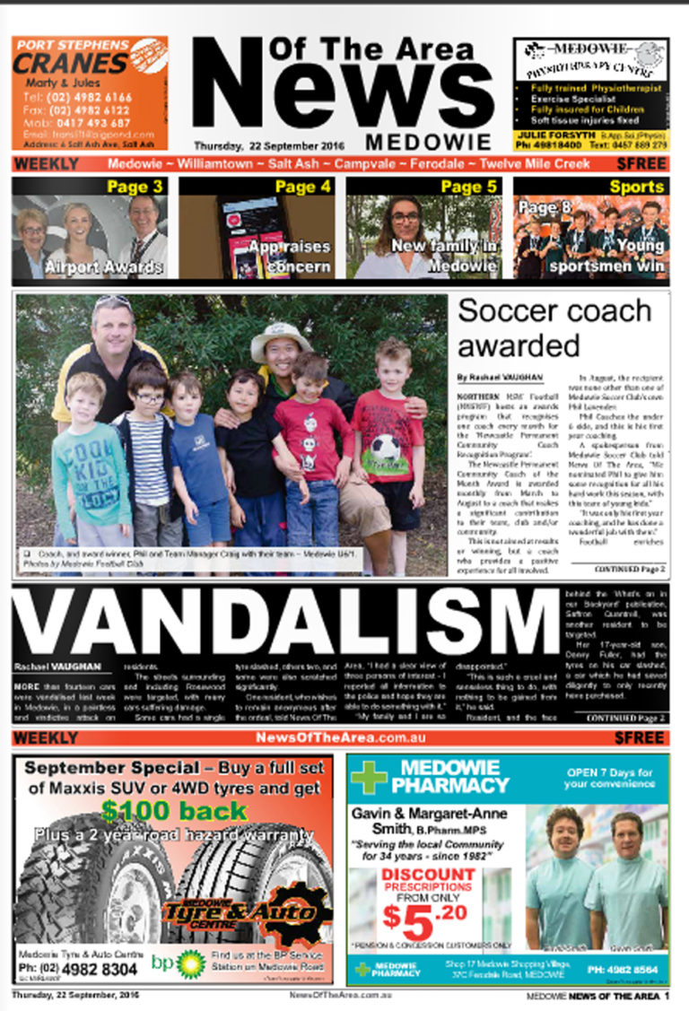 Printed Editions (Medowie)Medowie News Of The Area – 22 September 2016News Of The Area - Modern MediaSeptember 20, 2016