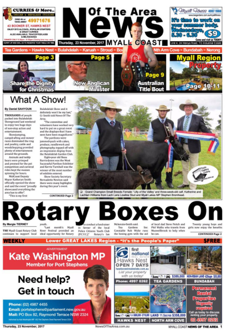 Printed Editions (Myall Coast)Myall Coast News Of The Area – 23 November 2017News Of The Area - Modern MediaNovember 24, 2017