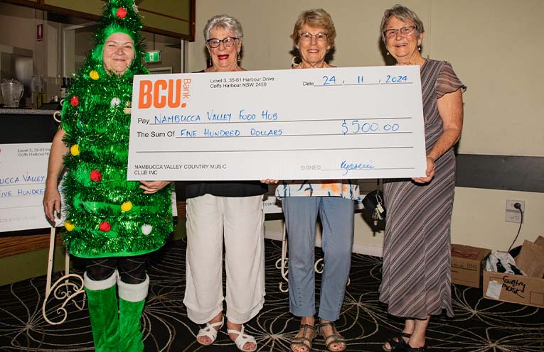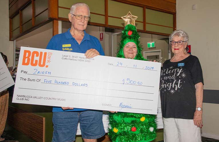 On Sunday, 24 November the club wrapped up 2024 with a Christmas party at the Macksville Ex-Services Club where, in addition to producing some wonderful live country music, they handed over the fruits of their fundraising to the Nambucca Valley Cancer Support Group, the Nambucca Valley Food Hub and Coffs Coast Community Radio 2Air FM.