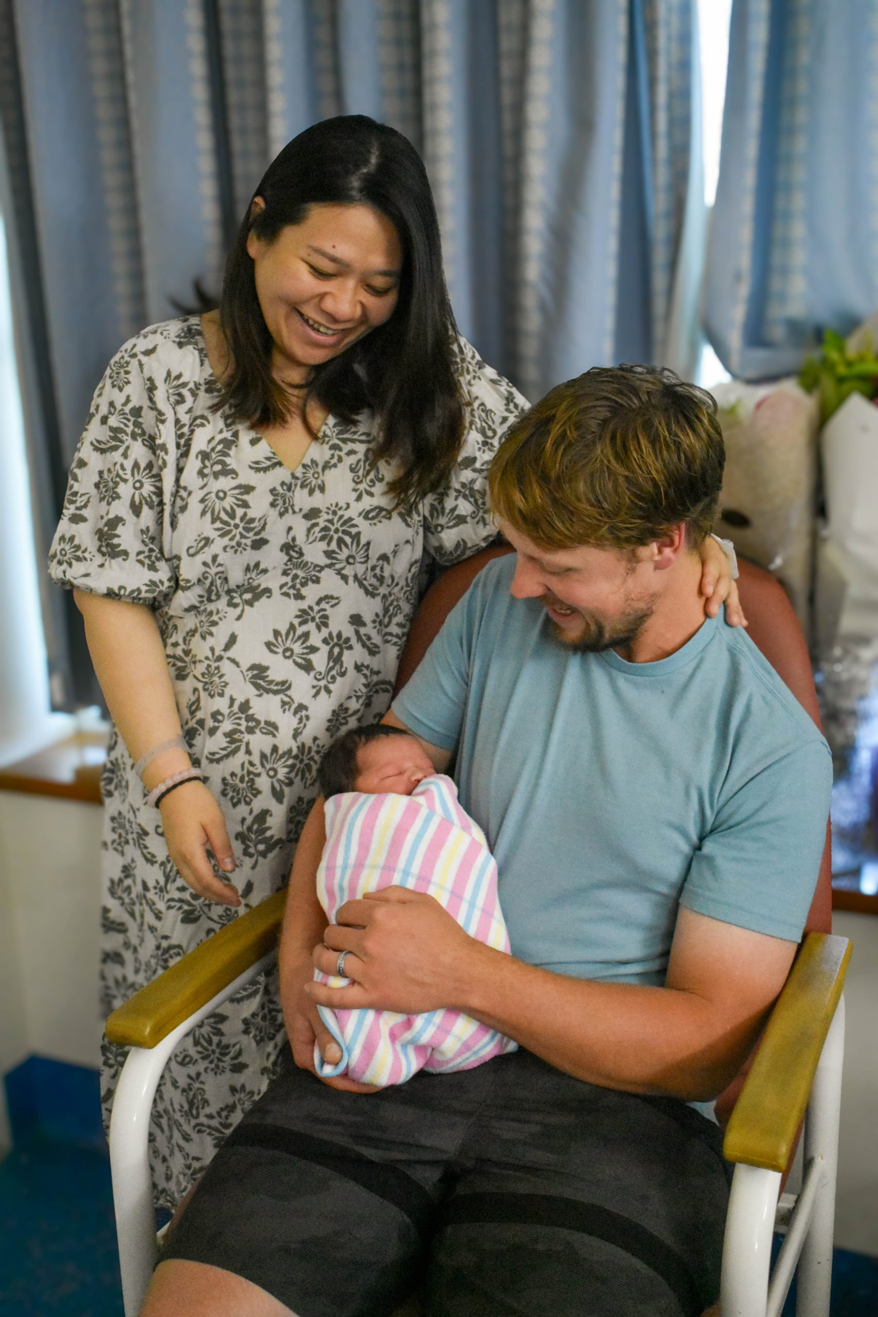 Family members from Newcastle were quick to make the trip to PMBH for their first cuddles, while the couple will travel to see more family once Remi has a passport.