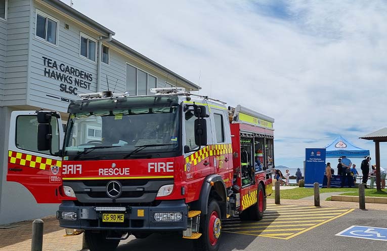 UNDER a gloriously clear summer sky, representatives from the Port Stephens-Hunter Police District, Tea Gardens Fire and Rescue NSW, and the local Surf Life Saving Club met locals and visitors alike at Hawks Nest’s Bennetts Beach on Friday, 19 January.