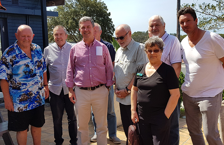 Dr Gillespie dropped into Tea Gardens last week for an informal meeting and lunch at the hotel with members of several local community groups.