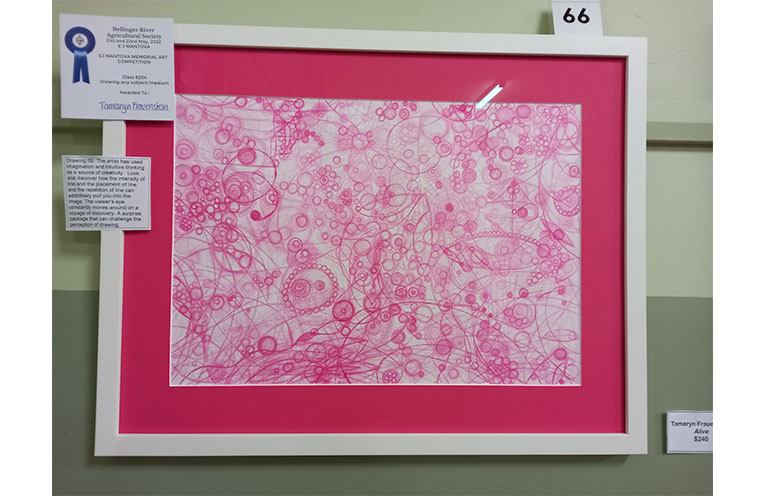 Coordinator Jackie Lee said, “After many years of organising the EJ Mantova Memorial Art Competition I never tire of seeing the diversity of artworks that are entered into the competition.