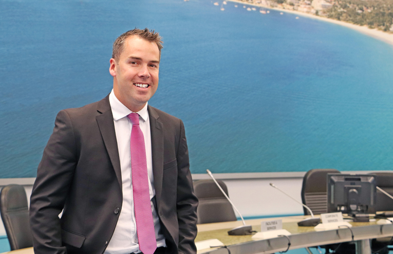 Lifetime Port Stephens resident and President of the Tomaree Business Chamber, Ryan Palmer, spent his first day in the office today after being officially declared Mayor of Port Stephens on Saturday 16 September 2017.