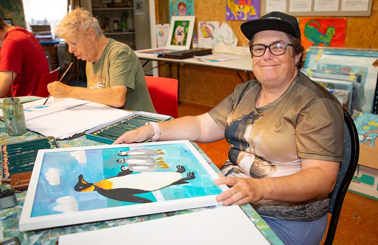 The exhibition includes a playful collection of original artworks created by participants supported by the National Disability Insurance Scheme (NDIS) at Phoenix School of Arts and, if previous years are any measure, competition and bidding will be fierce at the auction on 28 October.