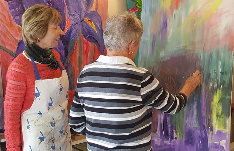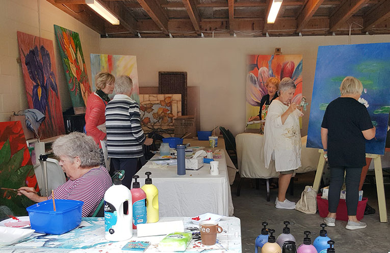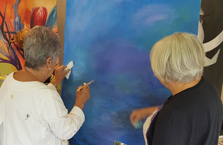 Meantime, GIG artists are attending Fabulous! Artspeak gatherings, working in teams to produce the series of big, botanical-inspired paintings – all under COVID rules, of course.