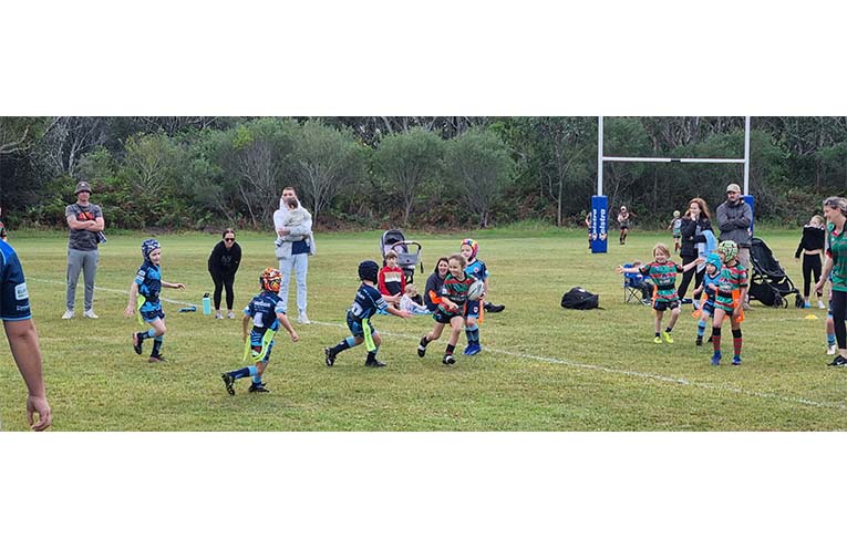 The U6s, and their parents, started bright and early, the former burning up their limitless energy in a friendly game of tag-footy with Raymond Terrace, exhibiting the young sportsmanship we all want to see, especially as the visitors had to lend the Hawks two players to make up the numbers, while coaches acted as referees and helped the kids learn and practice the game.