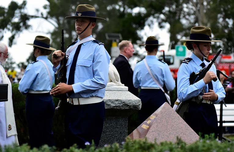 Once assembled in Memorial Park, the youth of the community played an important role in the Dawn Service with senior pupils from Karuah Public School opening the service and Air Force cadets from 335 Squadron forming the Catafalque Party.