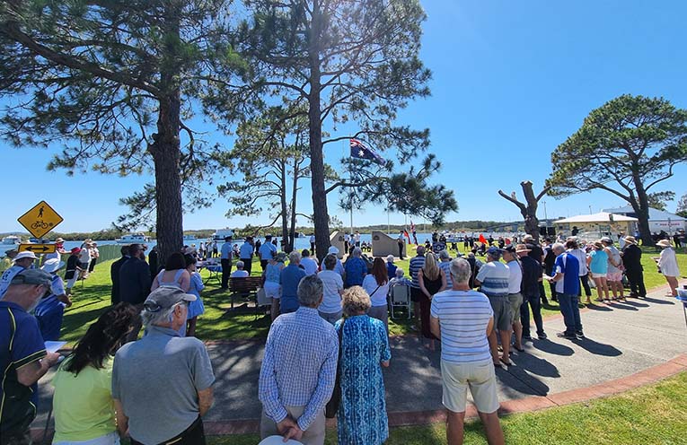 LARGE crowds gathered at Tea Gardens ANZAC Park for the Remembrance Day service on Saturday, 11 November.
