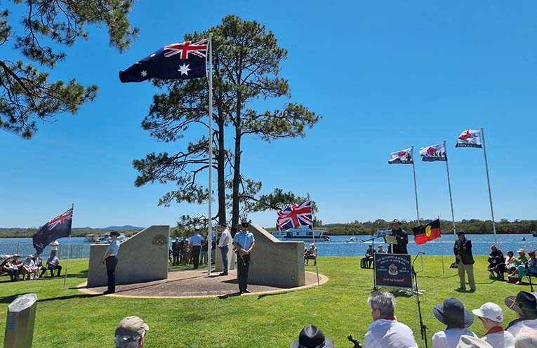 After the service, Tea Gardens Country Club hosted a free sausage sizzle, and all enjoyed the amazing late-spring weather, with the flag-fluttering breeze keeping temperatures bearable and the bugs away.