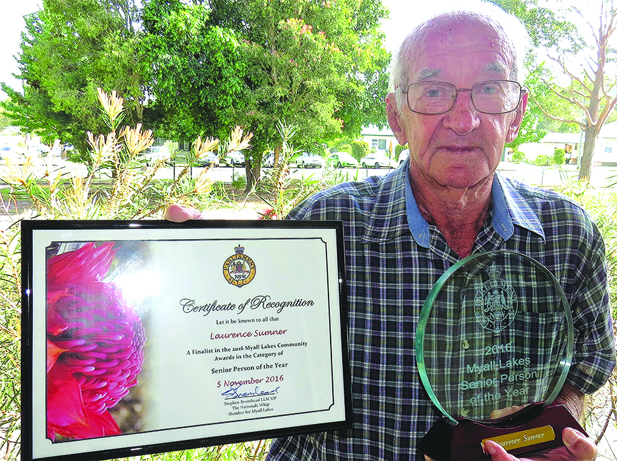 Bulahdelah’s Laurence Sumner was named the 2016 Myall Lakes Senior Person of the Year at the Community Awards Ceremony held in Taree last week.